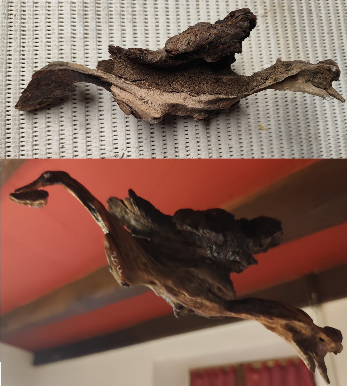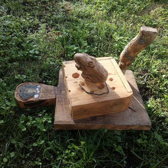 sculptés dans un cep de vigne, le poisson sur du bois