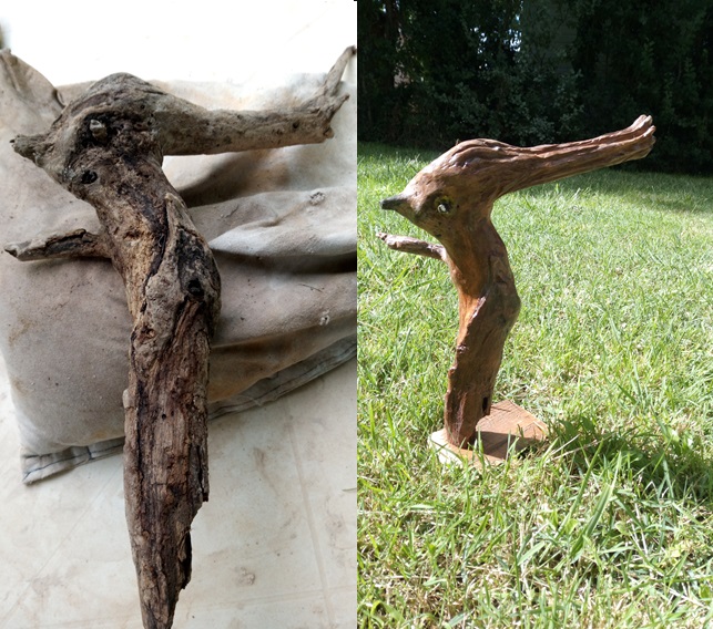 bois flotté, puis peint.