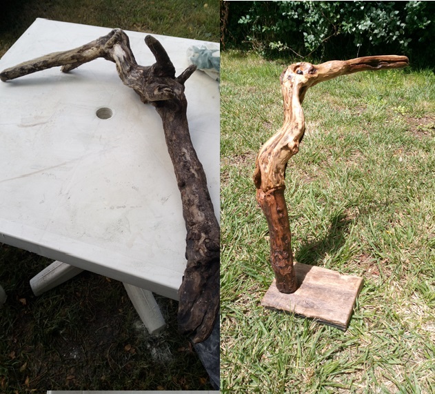 Sur la base d'un bois flotté ramassé sur la