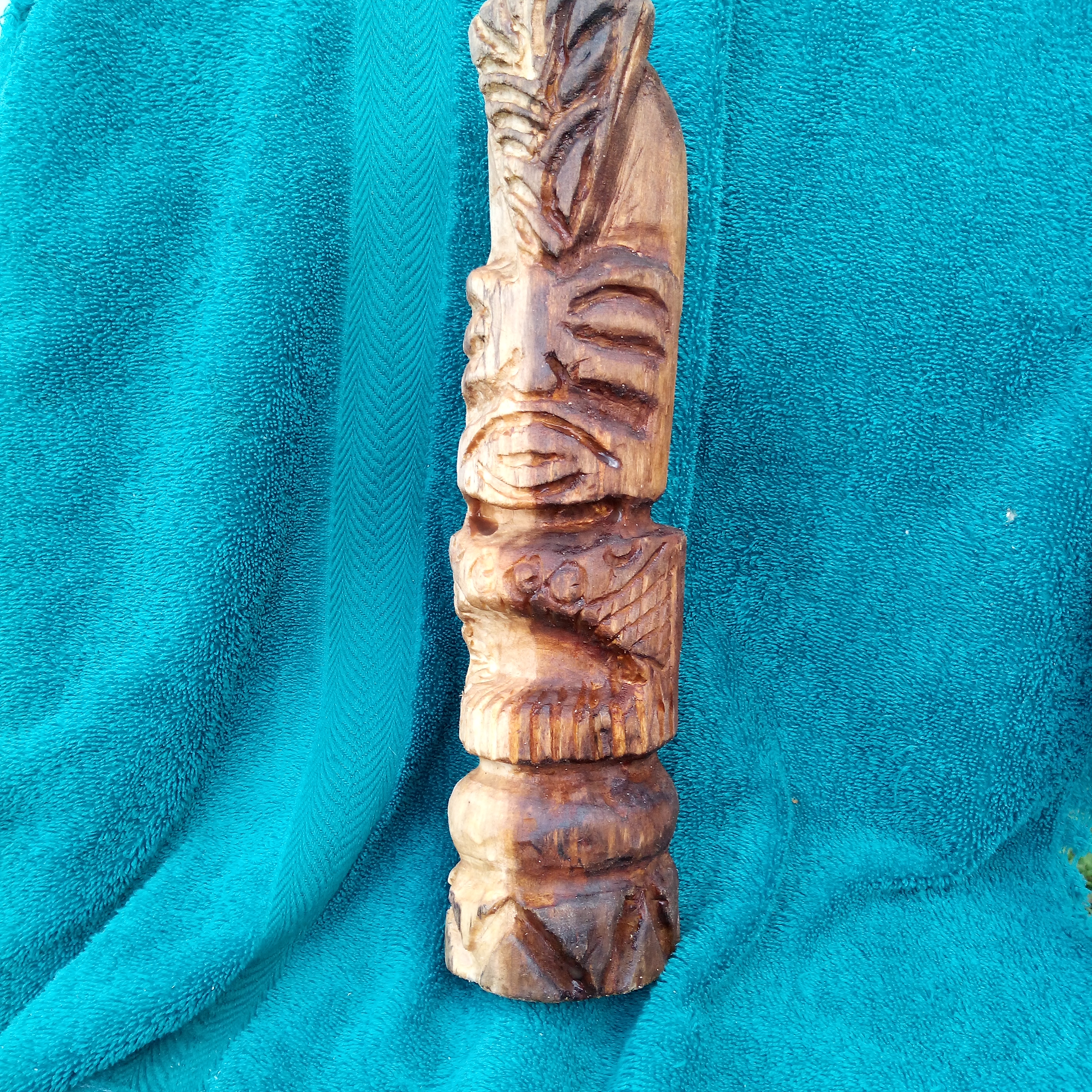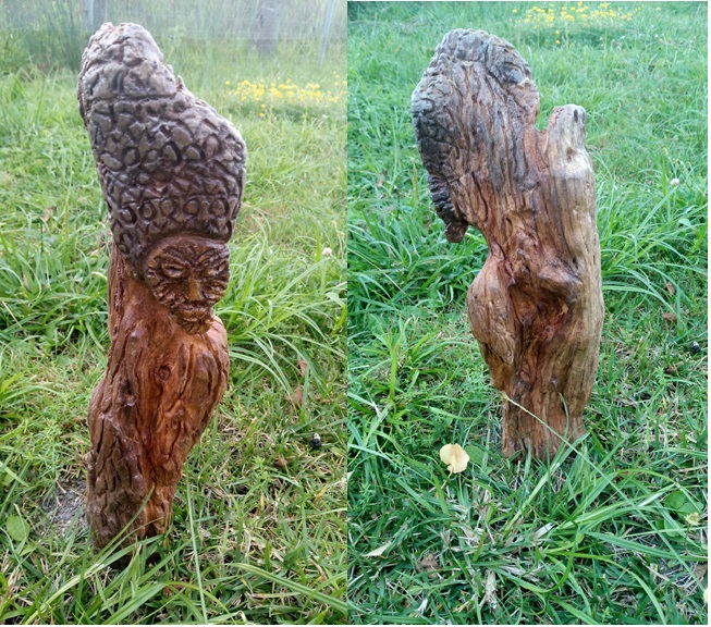 gravées dans un autre morceau de bois flotté. |