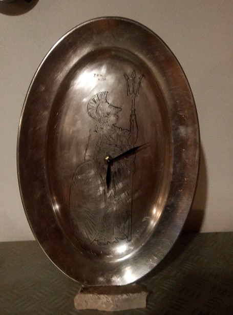 Après le tatouage, la gravure sur bois... la pendule Athéna (déesse de la sagesse).