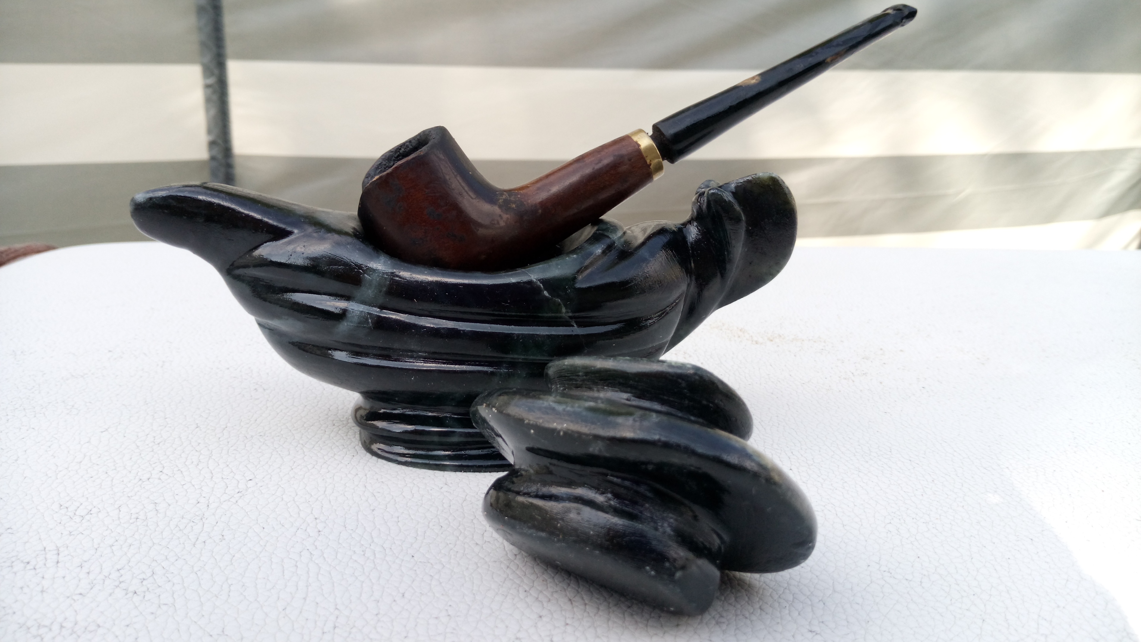de stéatite, couleur agate. Elle est vernie.