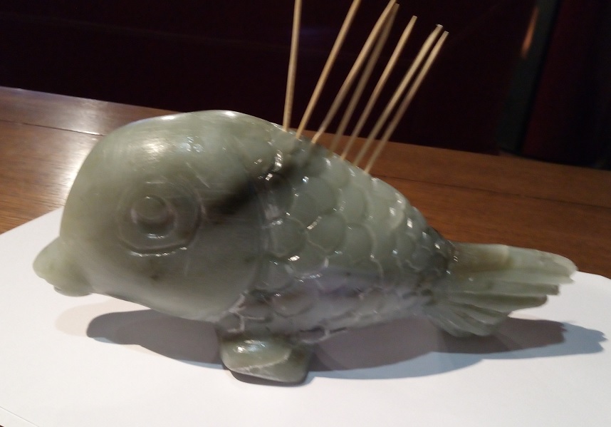 sur un morceau de stéatite verte, le poissin dans une