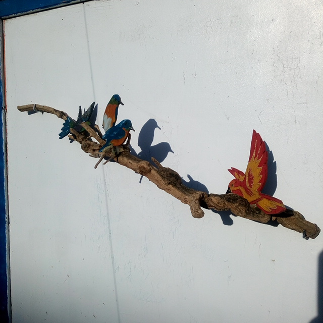 bois flotté. Les oiseaux en plexi ou en bois, peints