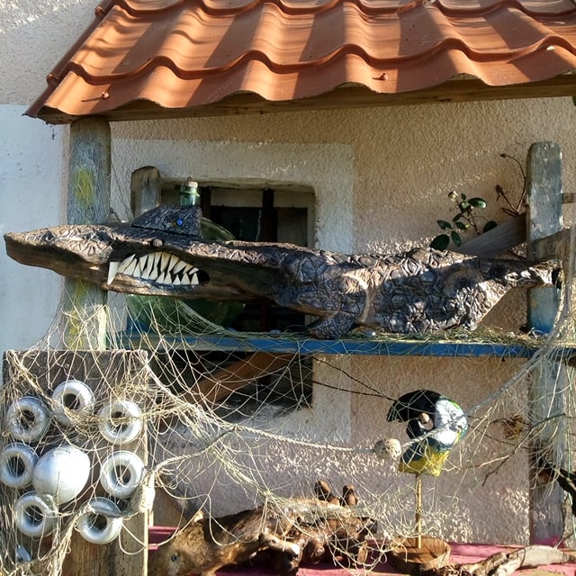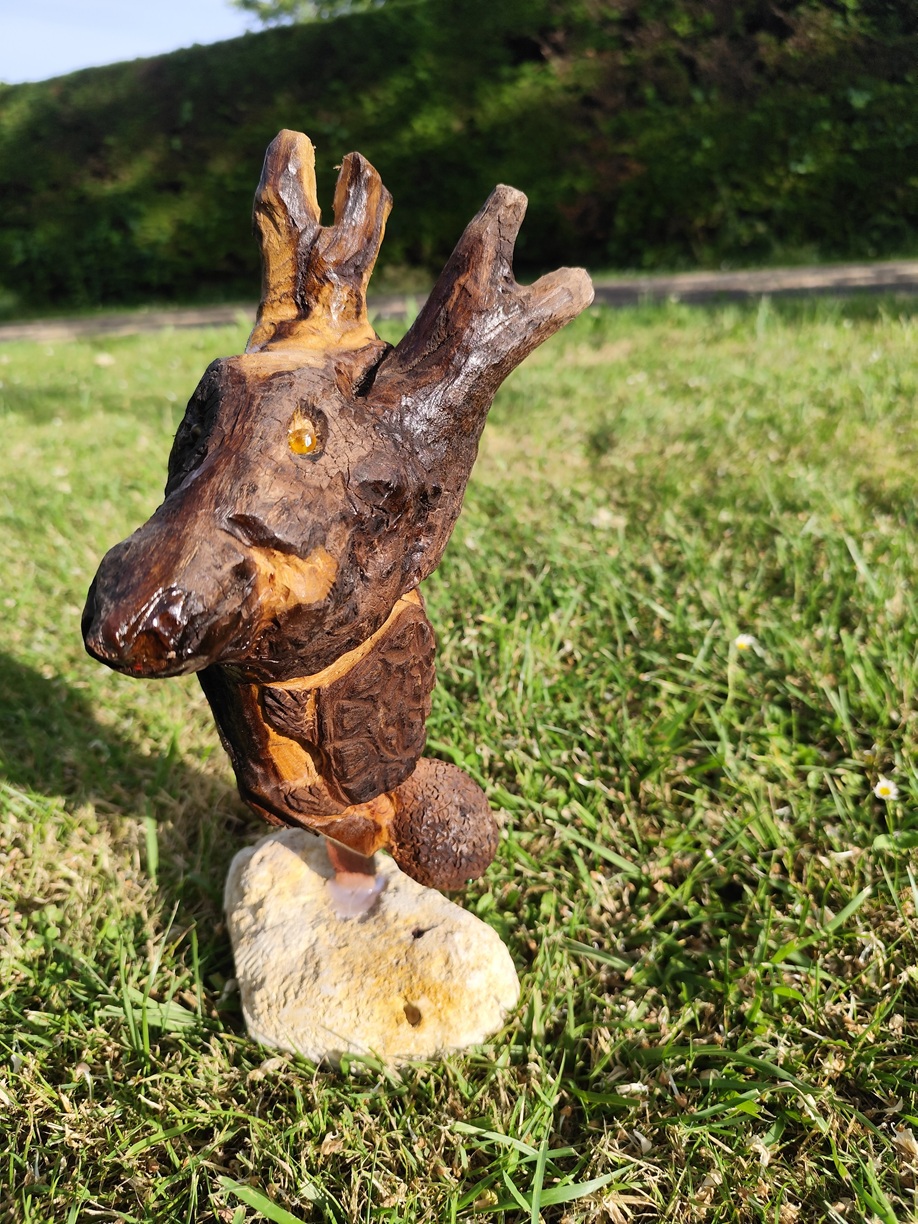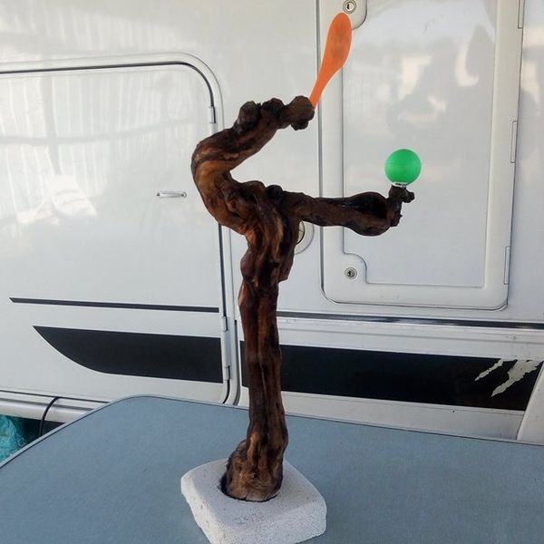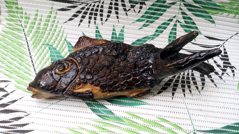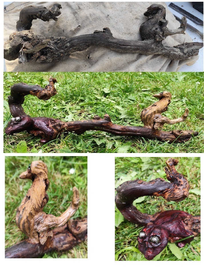 sculptés dans un cep de vigne, le poisson sur du bois