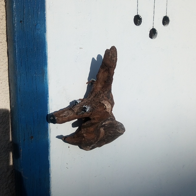 bois flotté, puis peint.