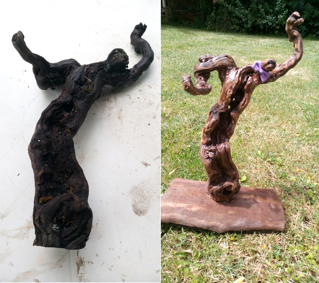 Sur la base d'un bois flotté ramassé sur la