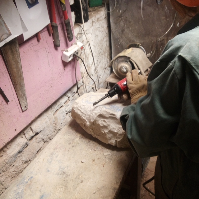 burineur pneumatique pour dégrossir la pierre. Cet