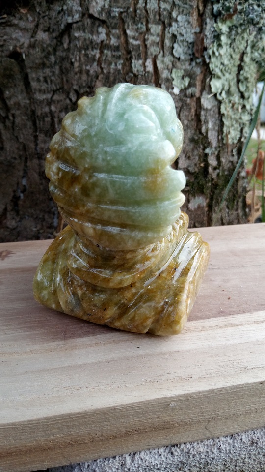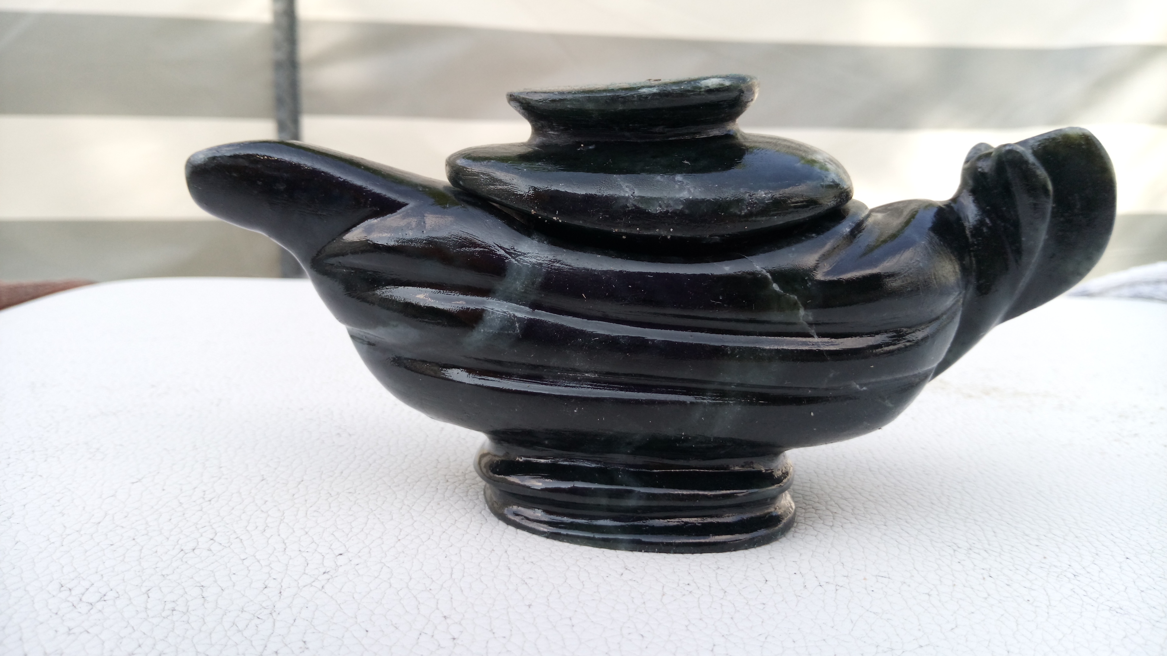 de stéatite, couleur agate. Elle est vernie.