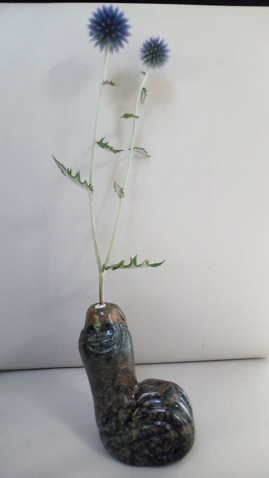 Sculpté dans une chute de stéatite. Il va découvrir la douceur angevine.