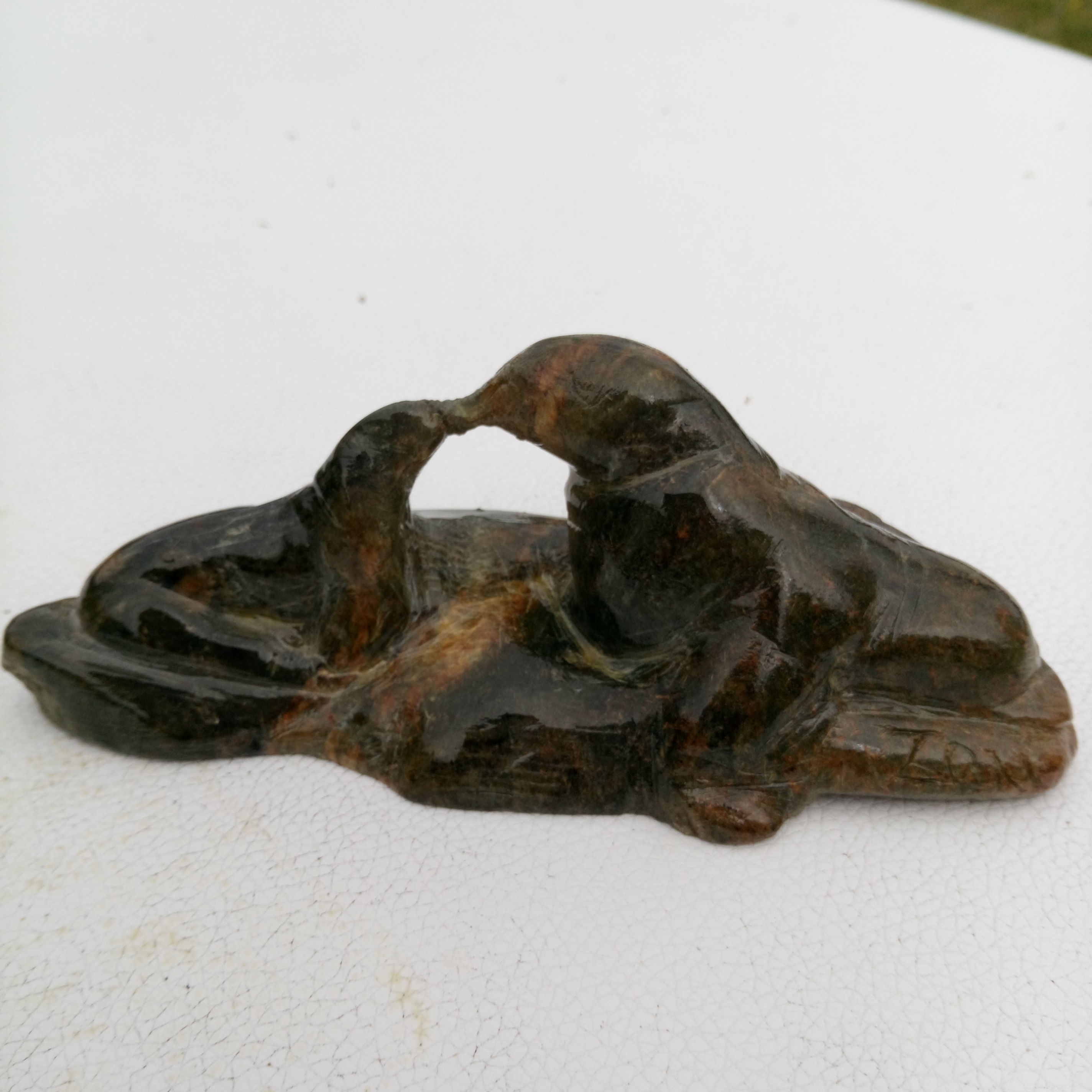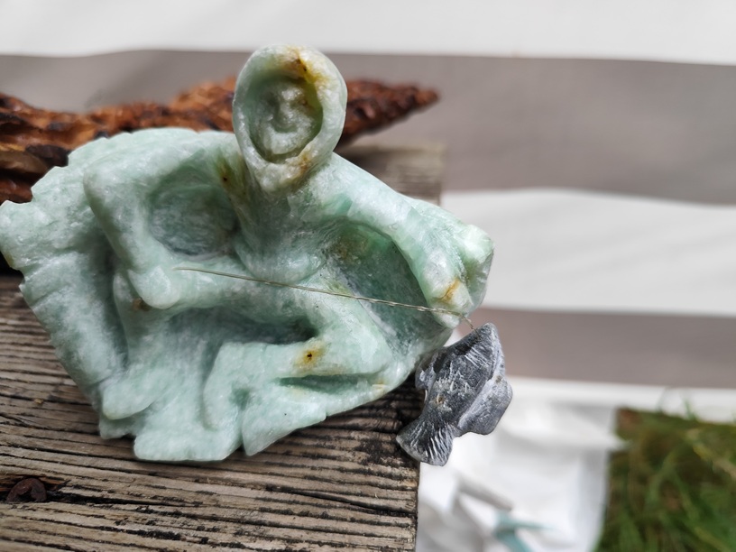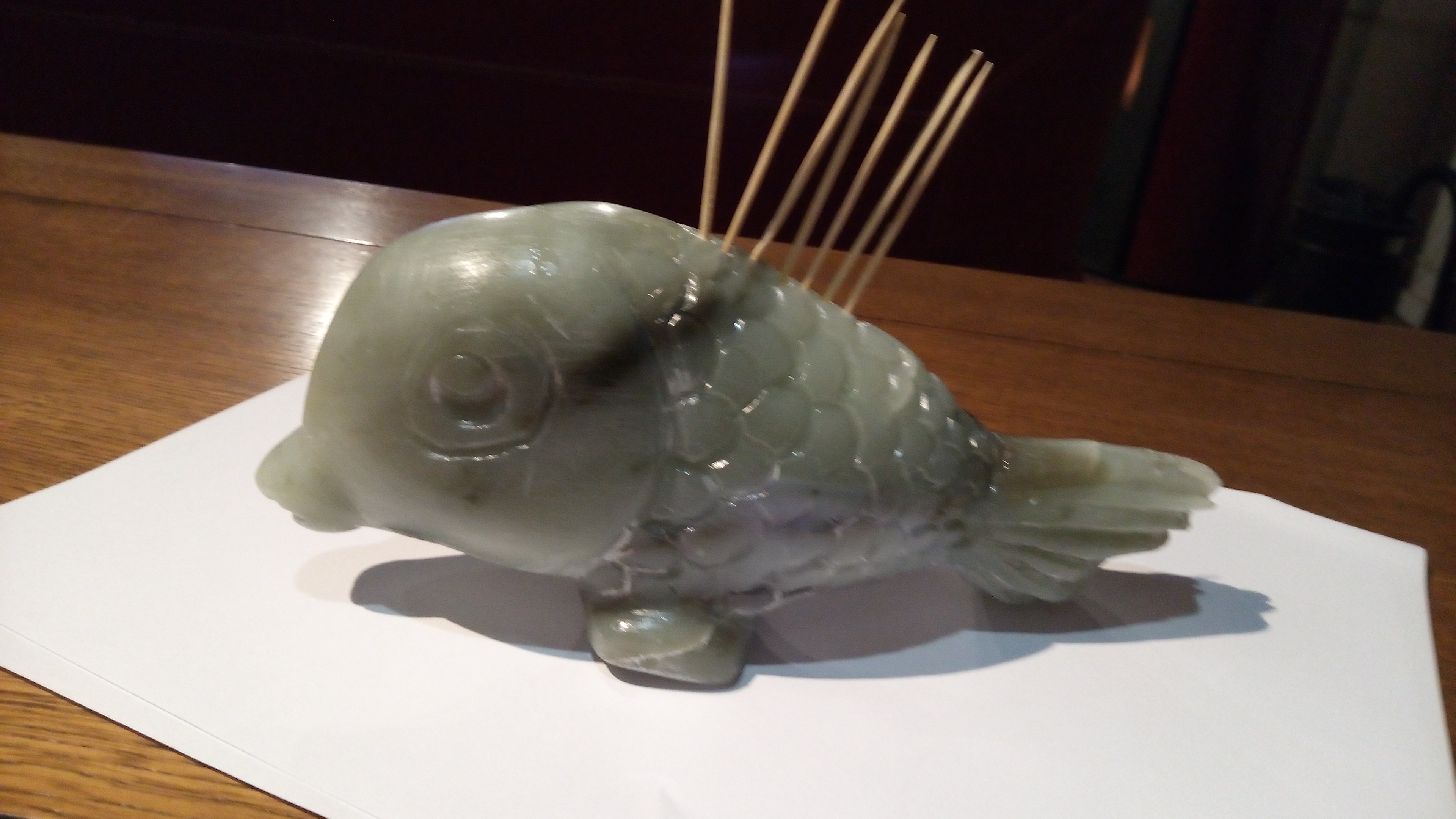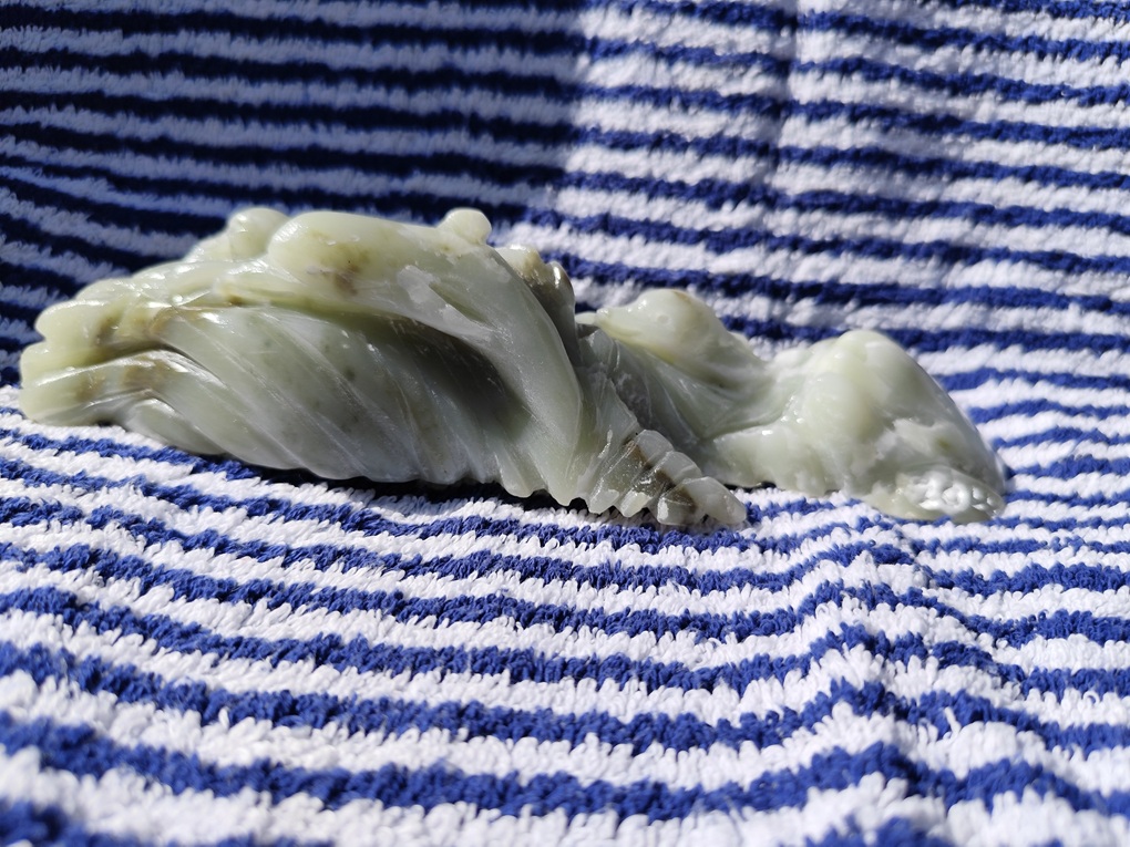 sur un morceau de stéatite verte, le poissin dans une